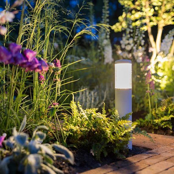 Deze laag bovengronds armatuur LIV LOW geeft rondom een warm wit sfeerlicht. Geschikt voor bijvoorbeeld het terras of de border.